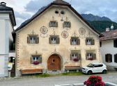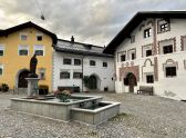 Unsere Reise beginnt in Scuol (Schuls), auf 1.290 Metern über dem Meer. Das charmante Dorf im Engadin begeistert uns sofort: wunderschöne Engadiner Häuser mit bemalten Fassaden, enge Gassen und ringsum die gewaltigen Berge der Unterengadiner Alpen. Tief unterhalb des Orts rauscht der Inn durch das Tal – bei Sonnenschein türkisblau, heute eher blaugrau. Eindrucksvoll dagegen die satt grünen Wälder und hohen grauen Felswände. Nach dem Einchecken im Hotel genießen wir ein Abendessen und unternehmen noch einen kleinen Spaziergang durch das Dorf. Als wir zur Kirche gelangen, dürfen wir zufällig einer Probe der örtlichen Jugend-Brass-Band lauschen – ein wunderschöner, sinnlicher Moment in dieser ruhigen Abendstimmung. Zurück im Hotel entdecken wir dann noch eine kleine technische Überraschung: eine moderne WC-Dusche, wie man sie eher aus anderen Ländern kennt.