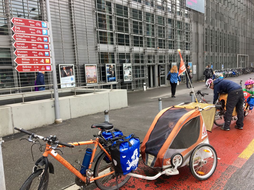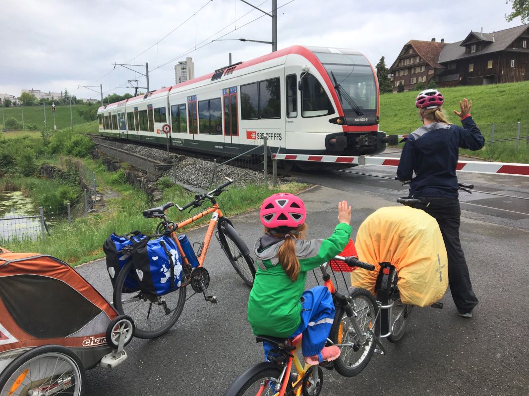 Die diesjährige Familien Fahrradtour über die Auffahrts-Tage haben wir wetterbedingt etwas gekürzt. So sind wir am Auffahrts-Donnerstag erst gegen Mittag in den Zug nach Luzern gestiegen. Mit an Board, 2 Erwachsene, 2 Kinder (5 1/2 und 1 1/2 jährig), 2 Erwachsenen Fahrräder, an einem davon der Follow-me montiert, 1 Kinderfahrrad 20 Zoll, 1 Kinderanhänger. Wohl dank dem trüben Wetter war es kein Problem, all diese Fahrräder/Anhänger im Zug zu platzieren, womit die erste Herausforderung schon mal gemeistert war. Nachdem wir das Mittagessen im Zug eingenommen hatten, erreichten wir gegen 13.00 Uhr Luzern (434 m.ü.M.). In Regenmontur starteten wir dann gegen 13.20 Uhr, der nationalen Nord-Süd Route 3 folgend, zunächst am Wahrzeichen der Stadt Luzern, der Kapellbrücke, vorbei und schliesslich entlang der Reuss (mit schöner Grillstelle und Spielplatz) rasch stadtauswärts Richtung Emmenbrücke. Die Route führte dann aufwärts nach Rothenburg (488 m.ü.M.) wo wir dann im Tierpark „Toni‘s Zoo“ eine erste grössere Pause machten. Gerade als wir uns nach der Besichtigung der Tiere zum Restaurant aufmachten, ergossen sich starke Regenschauer über uns. Glück muss man haben. Als wir uns schon damit abgefunden hatten, die restlichen knapp 9 km bis Hochdorf im Regen zu fahren, hörte dieser plötzlich wieder auf und so konnten wir nach einem Kurzbesuch beim Reiterhof Wegscheiden, die Fahrt durch den schönen Chlewald, vorbei an einigen Bauernhöfen bis hinunter nach Hochdorf bei wieder trockenen Verhältnissen geniessen. Gegen 17.15 Uhr erreichten wir nach 20 km Fahrt unseren Uebernachtungsort.