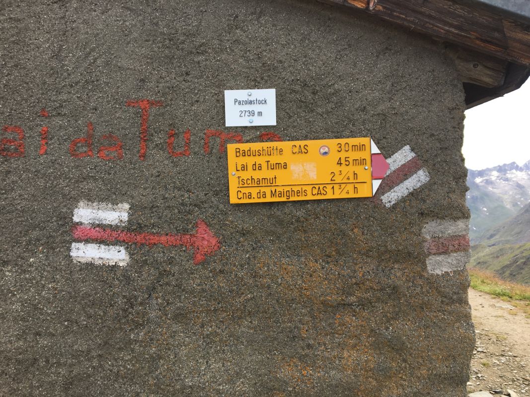 Hütte unmittelbar unterhalb des Gipfels des Pazolastock