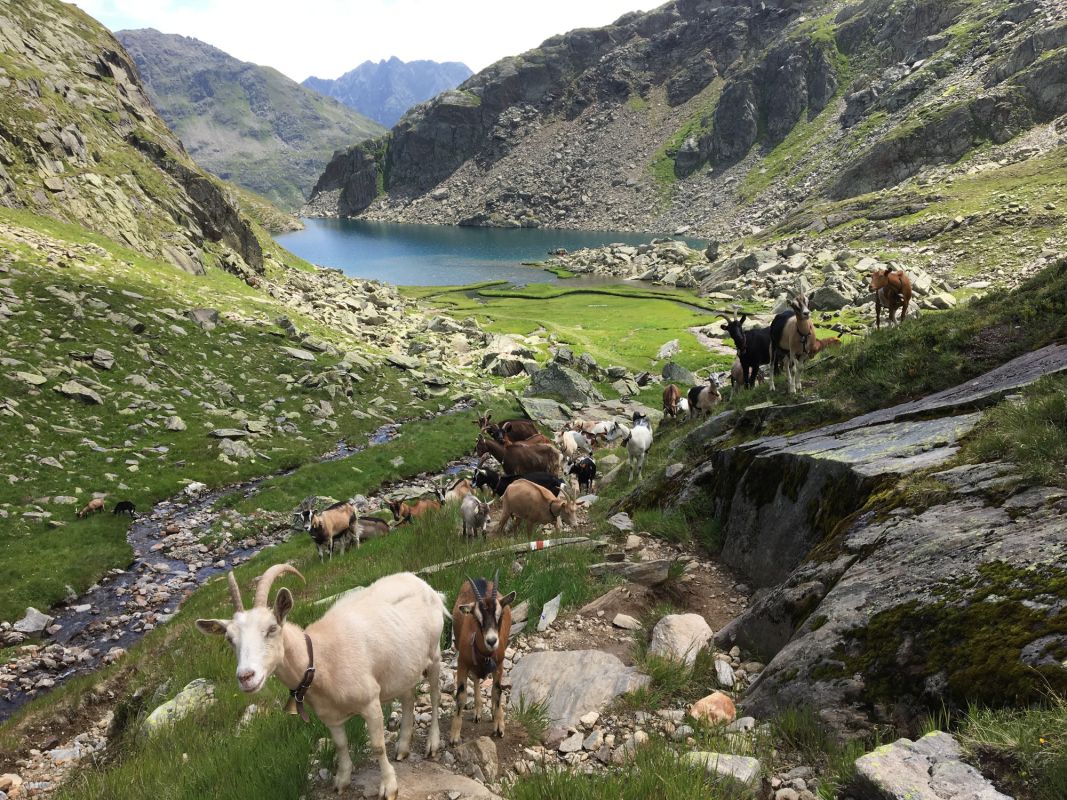 und dann die ganze Ziegenherde mit dem Tomasee im Hintergrund...