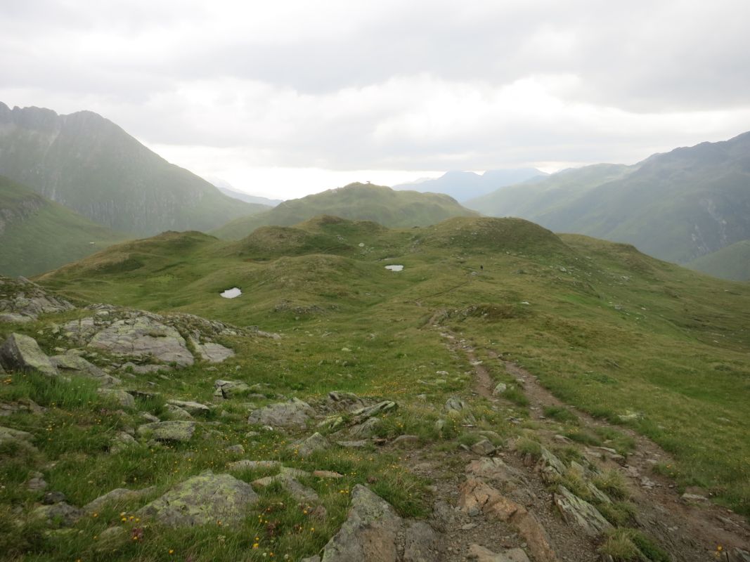 Blick zurück auf den sanften Hügel des Pazolastocks