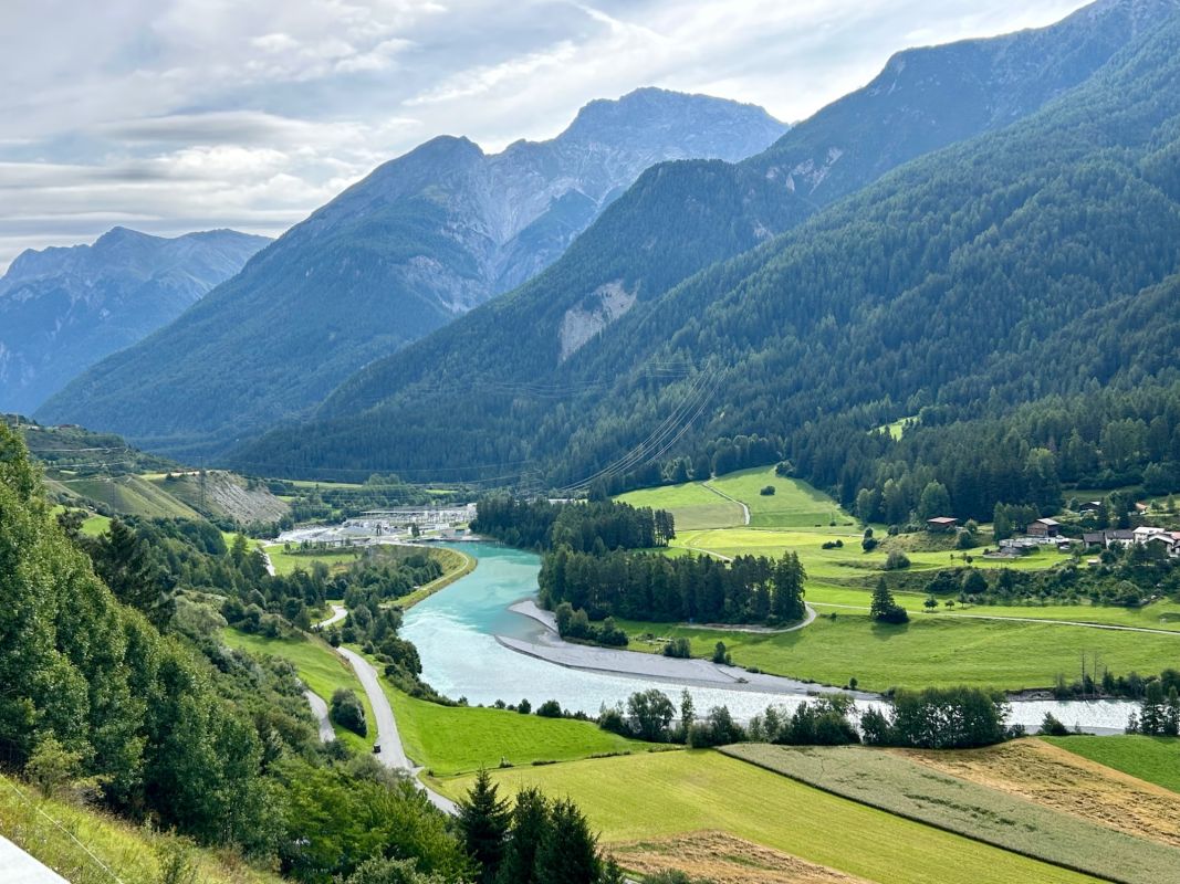 Dem Inn entlang fahren wir abwärts zur Österreichischen Grenze bei Martina (1035 m.ü.M.)