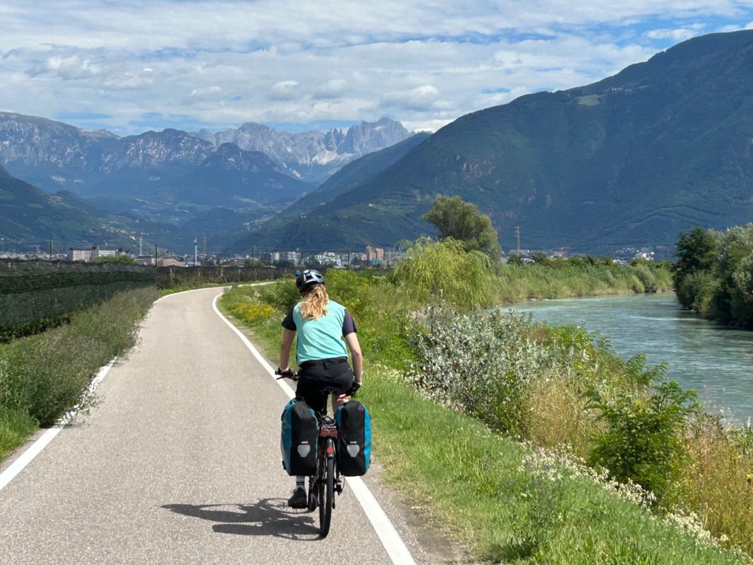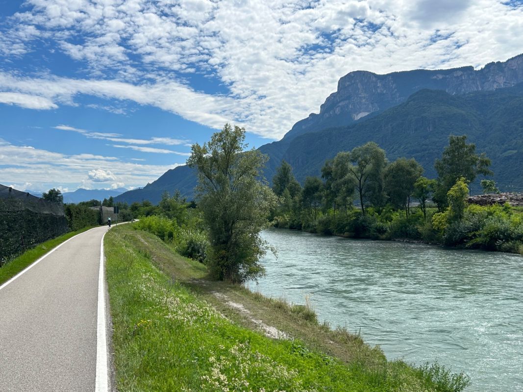 Das erste Bild der Etsch, auf italienisch Adige. Wir orientieren uns die nächsten 4 Tage am Etsch-Radweg