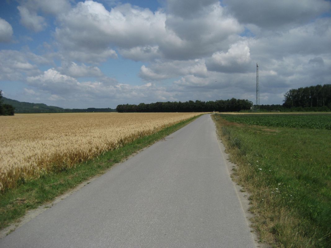 Heute musste ich wohl gebremst werden, denn nur so kann ich mir erklären, dass ich über die Hälfte des Tages gegen den überaus intensiven Westwind ankämpfen musste. Obwohl es häufig eben war, konnte ich zwischen den häufig weit offenen Feldern den totalen Stillstand nur knapp abwenden. Da hatte es ein Touren-Biker, welcher mir auf der abgelegenen Route entgegenkam, weitaus besser. Doch angefangen hatte es heute morgen nicht eben, sondern nur 35 min. nachdem ich aufgewacht war bzw. 5 min. nach Fahrbeginn begann bereits die erste intensive Steigung. So war mein T-Shirt trotz noch kühler Temperaturen bereits nach der ersten Viertelstunde wieder nass. Durch die heute gewählte Nebenstrasse hinunter nach Levice wars ein häufiges bergauf, umso rasanter dagegen waren die Abfahrten. Inmitten der bekannten Waldlandschaften, durch einige wenige Dörfer und kaum ein Auto, da viel mir auf, dass ich allgemein in der Slowakei verhältnismässig wenig Menschen angetroffen bzw. überhaupt gesehen habe. Denn fast alle meine Routen führten durch Wälder und Nebenstrassen und ein anderer Teil auf der eher grossen Hauptstrasse. Die Slowakei ein Land, welches man also praktisch auf guten Feld- und Waldstrassen durchfahren kann? Auch heute hatte ich wieder tierische Bekanntschaften. In einem Dorf überquerte erneut ein Fuchs die Strasse und eben vorher auf dem Kornfeld rannte ein Haase davon; mann war der schnell... Ansonsten erlebte ich heute einige kleine Seen entlang der Route sowie der grosse Fluss Vah, welcher später in die Donau mündet. Und auch heute wieder präsentiere sich ein Panzer direkt neben einem Haus als Hingucker. Erstmals auf der Tour begann es während dem Fahren etwas heftiger zu regnen. Beim ersten Platzregen fand ich gerade noch einen geschützten Unterschlupf, beim 2.intensiven Regenfall jedoch war ich bereits etwas nass, als ich eine Unterführung erreichte, dort aber montierte ich erstmals auf der Tour alle Regensachen. Eigentlich wollte ich heute noch irgendwo etwas essen, aber da ich immer näher an die Stadt Bratislava heranfuhr (ohne Essmöglichkeit), entschied ich mich eine der wohl letzen Schlafstellen auf einem Kornfeld zu nutzen. Die Reiswaffeln müssen als Nahrung halt ausnahmsweise genügen. Morgen in Bratislava (20 km) gibt’s dann sicher etwas zum frühstücken und natürlich ist etwas Sightseeing angesagt. Bin gespannt auf Bratislava und die Fahrt nach Oesterreich.