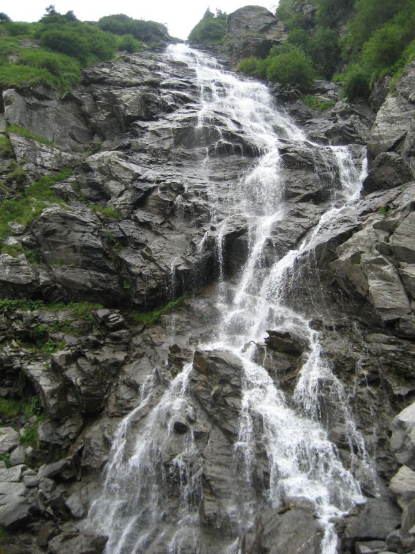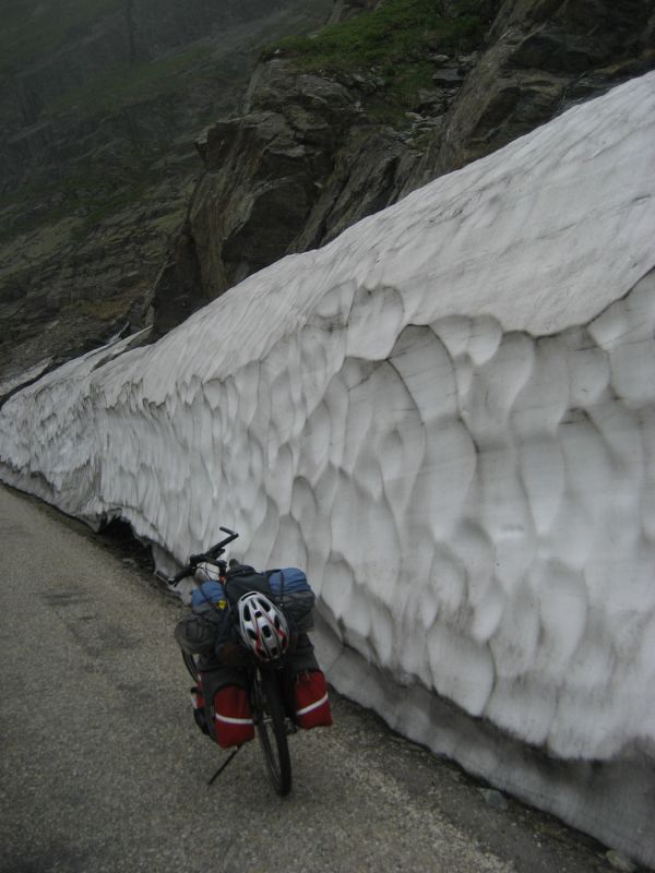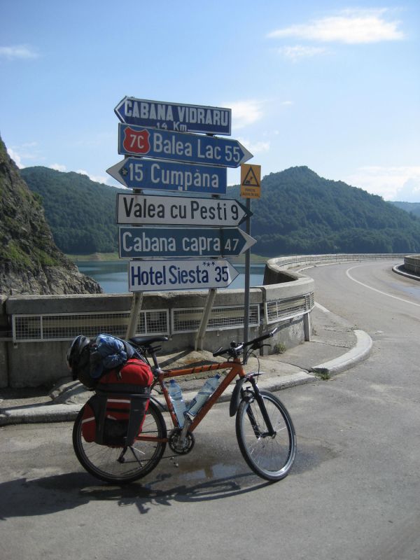 Ueber Nacht gewitterte es so richtig fest, und da ich das Aussenzelt gestern Abend nicht vollständig verschlossen hatte, erwachte ich tatsächlich mit einem feucht-nassen Schlafsack. Dumm gelaufen... Nach dem bereits gestern intensiven Tag war ich gespannt wie mein Körper nun den „Transfagarasan“, so heisst die 105 km lange und höchste befahrbare Bergstrasse Rumäniens auf 2044 m.ü.M., meistern würde. Die Passstrasse führt denn auch gleich neben dem höchsten Berg Rumäniens, dem Moldoveanu (2544 m.ü.M.) vorbei. Um 05.45 Uhr gings los. In Curtea de Arges (nach 32 km) stärkte ich mich nochmals mit Brot, Joghurt, Sandwich und Kaffee, dann begann das Abenteuer. Die Route verlief von Dorf zu Dorf, vorbei an vielen Pensionen und einigen Campingplätzen, ruhig und mit kaum Verkehr regelmässig hinauf zur unglaublich schönen Gegend um den Stausee (Vidraru). Für Adrenalin-Suchende wird dort sogar Bunjee-Jumping über die Staumauer hinunter angeboten, aus einer Höhe von 166 m versteht sich. Die Gegend dort wirklich ein Traum, also ein paar Tage dort am See in mitten der Natur campen wäre genial. Die sehr langwierige, kurvenreiche und holprige Strasse mit vielen aufs und abs (aber in schöner Landschaft) führte an das andere Ende des Stausees. Erst jetzt aber begann der intensive Passaufstieg wie man ihn kennt. Die Gegend mit den bewaldeten Bergen war einzigartig. Mühsam und absolut überraschend gabs auch in dieser tollen Landschaft Bekanntschaften mit streunenden Hunden, 2 liefen mir kleffend nach... Doch sonst war ich fasziniert von den steilen Hängen links und rechts, endlich mal richtige Bergbäche, einige kleinere Wasserfälle, dazu weidende Pferde, Kühe und Schafe. Mit einem Schaf-Hirten sowie einem anderen Hirten der gerade mit seinem Esel unterwegs war, durfte ich sogar ein Foto machen. Doch der Aufstieg zog und zog sich in die Länge, dazu wehte ein immer kühlerer Nordwind, es fielen ein paar Regentropfen und langsam bekam ich tatsächlich etwas kühl. Das Auftragen der Sonnencreme am Morgen hätte ich mir sparen können. Immer wieder fand (suchte?) ich Gründe zum pausieren, die ersten Schneewände kamen und Rumänen wie Schweizer wollten dies fotografieren. Leicht frierend und kaputt musste ich oben auf Passhöhe zunächst noch durch einen 900 m langen Tunnel ohne Beleuchtung (!) und Lüftung fahren. Die Gefühle während der Tunnelfahrt zu beschreiben ist schwierig, ich probiers trotzdem mal: Also erstens war ich kräftemässig ziemlich am Limit und es war kalt, ich wusste nicht wie lange dieser Tunnel ist, aber dass die Beleuchtung fehlt merkte ich schnell. Mit viel Respekt (es gab ja kein anderer Weg) wagte ich mich in das dunkle Loch, mein Fahrradlicht spendete etwa gleich viel Licht wie eine Kerze. Es war irgendwie unheimlich und ausser mir war kein Fahrzeug im Tunnel, so richtete ich das Licht so gut wie möglich auf die weisse, knapp erkennbare Mittelspur-Linie, ansonsten sah ich rein gar nichts. Plötzlich verlor ich die Linie, ich wusste nicht ob ich gleich an die Wand oder auf der falschen Spur fahre. Plötzlich hörte ich Lärm; ein Auto näherte sich mir laut, aber langsam von hinten. Ich tastete mich an die rechte Tunnelwand, hielt an und hoffte dass er das Fahrrad erkennt. Das Auto fuhr langsam vorbei, denn auch seine Sicht war schlecht. Ich wollte die Chance gleich packen und tritt, den roten Hinterlichter folgend, mit Vollgas in die Pedalen, in Sicht einzig die roten Lichter, welche sich aber immer mehr entfernten, bis sie schliesslich ganz weg waren. Und wieder sah ich nichts, doch dann aus heiterem Himmel plötzlich eine ganz leichte Erhellung, das Ende des Tunnels.... 900 m Abenteuer und Adrenalin waren vorbei. Bei 0 Grad und starkem Nebel erreichte ich die Passhöhe, auf dem Platz viele Autos, Busse, Verpflegungsstände und viele Radrennfahrer, die gerade hier oben ihr Rennen beendet hatten. Ich suchte mir durch den Nebel gleich das Restaurant auf um Wärme und Energie (Essen) zu tanken. Nach 1 Stunde Pause setzte ich zur kurvenreichen Abfahrt das Tal hinunter an. Hauptsache es wurde wieder wärmer je tiefer es ging. Nun übernachte ich am Ende der 105 km langen Passstrasse. Ich denke das war heute wohl eine der landschaftlich schönsten Routen der Tour, sicherlich aber die Route mit dem grössten Aufstieg und hoffentlich auch der Tag mit den kühlsten Temperaturen.