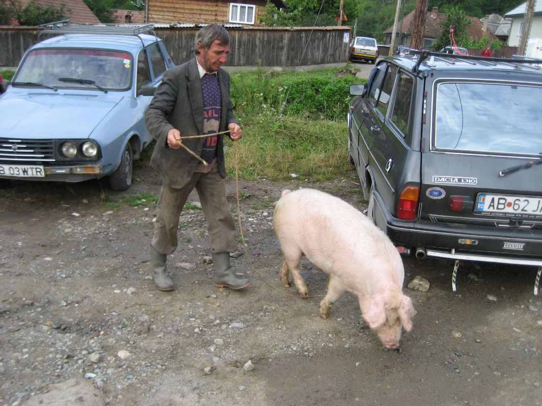 So schnell geht’s; vor 1 Woche konnte ich vor Hitze kaum schlafen, diese Nacht gings gerade noch trotz T-Shirt, Trainer, Faserpelz und Schlafsack. Es windete sehr stark. Auch heute wars eher frisch, erst jetzt am Abend ist es dank Sonnenschein wieder etwas wärmer. Mein Ziel war heute, auf der wenig verkehrsreichen Nationalstrasse 75 die westlichen Gebirge mit dem Värtop-Pass auf 1160 m.ü.M. zu überqueren. Die Route war von Beginn weg sehr schön zu fahren, nur minim ansteigend und immer auf Augenhöhe mit dem Bach Aries und inmitten beidseits hoch empor ragenden Berge. Die Bauerndörfer zu Beginn noch verschlafen, doch im Verlaufe des früheren Morgens beobachtete ich immer mehr Pferdekutschen, Viehtransporte und schön angezogene Leute meines Weges. Und dann war mir klar warum: In einem Dorf fand wie jeden Monat ein riesiger Viehmarkt statt, aber nicht nur Kälber und Rinder, auch Schweine, Viehfutter, Nahrungsmittel und sogar Kleider und Hüte wurden zum Verkauf angeboten. In diesem ländlichen Volksfest fühlte ich mich pudelwohl und nahm mir entsprechend auch ausreichend Zeit für die Besichtigung, Beobachtung und natürlich zum Essen. So ass ich wie andere bereits nach 08.00 Uhr Grilliertes und trank feinen Tee. Auch die Dame mittleren Alters hatte ihre helle Freude, dass ein „Fremder“ so Spass hatte am Fest und war sichtlich erfreut dass mir Rumänien bisher so gut gefiel. Motiviert gings dann aber weiter, vorbei an 2 Campingplätzen und auch heute wieder realisierte ich, wie viele ganz schöne Häuser in Rumänien fortlaufend neu entstehen bzw. gerade im Bau sind. Richtung Passhöhe, also nach ca. 100 km langsam aber stetiger Steigung, wurde es dann definitiv steiler und somit anstrengender. Gerade da kam ich mit dem 1.Biker in Kontakt. Ein ca. 50 jähriger Mann namens Hudecek aus der Slowakei fuhr seit wenigen Tagen von Presov (Slowakei) über Ungarn hierher. In den nächsten 3 bis 4 Wochen möchte er ebenfalls wild campend in Rumänien herumfahren. Die nächste Nacht wird voraussichtlich meine letzte auf rumänischem Boden sein. Vor der Ortschaft Lunca habe ich gleich neben einem Bach ein schöner Platz gefunden, fand sogar endlich Zeit und Lust den Benzinkocher auszuprobieren (feine Teigwaren) und gerade jetzt erhalte ich Besuch von einer Kuh. Ich glaube doch wir haben beide Platz auf der Wiese. Das war wieder eine super Route heute. Den Schlusspunkt bildet morgen die verkehrsreichere E 79 bis Oradea. Dann bin ich gespannt auf eine neues Land.
