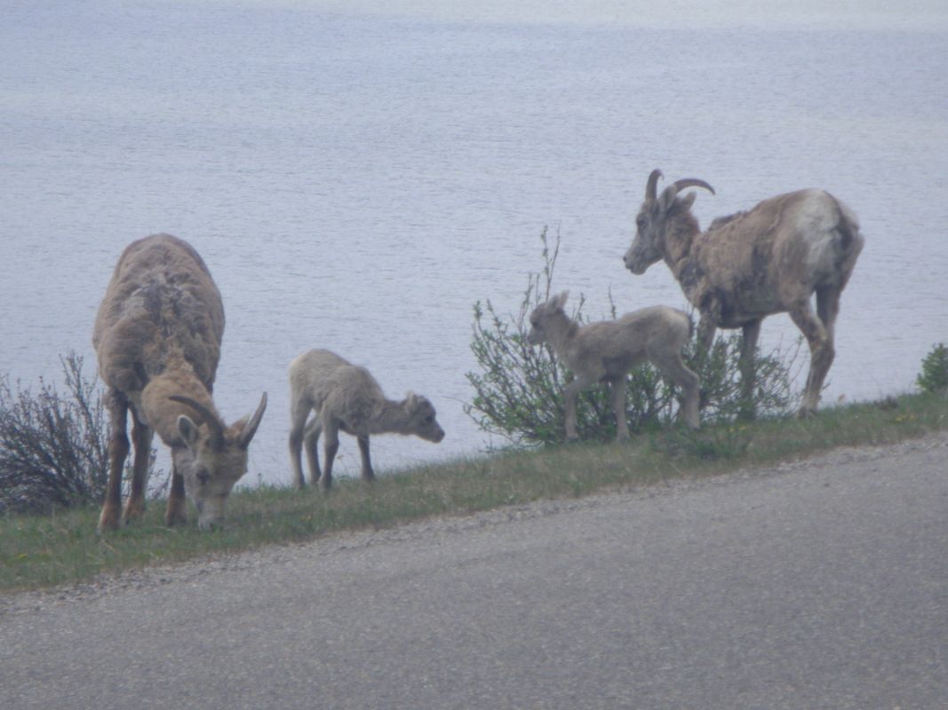 Auf unserer Tour begegneten wir ca. 15 Schwarzbaeren und 1 Grizzly (mit Jungem), die sich allesamt am oder naehe der Strasse aufhielten. Desweiteren kreuzten 1 Elch, mehrere Hirscharten, Fuechse, moeglicherweise ein Puma, Dickhornschafe, Seeloewen, viele Streifenhoernchen, Murmeltiere, Waschbaeren, Adler und viele andere Vogelarten unsere Wege. Von Muecken wurden wir nur an etwa 2 bis 3 Abenden uebelst belaestigt und Wale entdeckten wir leider keine. Weiter gibt es in Kanada noch Luchse, Stachelschweine, Biber und vieles mehr.