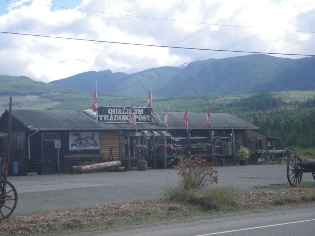 Am nächsten Tag fuhren wir mit Ausnahme eines kleinen Hügels auf praktisch ebener Strasse weiter entlang des Skeena Rivers und erblickten sogar wieder einen Schwarzbären, der sich bloss 30m vom Strassenrand entfernt aufhielt und sich nicht für uns zu interessieren schien. So erreichten wir bei der Ortschaft Terrace den Kleanza Creek Provincial Park (16 Dollars/Nacht) und waren sehr dankbar und froh, dass wir trotz ausgebuchtem Campingplatz (Victoria Day Weekend!) ausnahmsweise auf der sehr schönen grünen Picknick Area direkt am Bach campieren durften. Der „Campingplatz-Host“ erzählte uns, dass bereits eine Nacht vor uns an selber Stelle ein Schweizer Biker-Paar übernachtete und diese quer durch Kanada nach Montreal biken würden. Wer weiss, vielleicht werden wir sie ja noch antreffen...? Mit einem selbst gemachten Müesli zum Frühstück folgten wir auch am nächsten Tag weiter den verschneiten Bergen und dem Skeena River nordwärts und nebst Waldlandschaften sichteten wir erstmals auch einige Farmen. In Kitwanga, an der Verzweigung Richtung Alaska, kamen wir dann an eine Tankstelle und lernten beim Verpflegungsstopp prompt ein junges Schweizer Paar kennen, das aus dem Ybrig stammt und er ganz zufällig auch Fuchs heisst... Nur wenige Augenblicke später sprach uns ein Kanadier an, dessen Eltern in den 1950er Jahren aus der Schweiz (Uri) nach Kanada auswanderten. Zufälle gibt’s... Gegen Ende unserer Tagesetappe mussten wir dann erstmals seit längerem wieder 2 Hügel hoch trampen. Doch der wunderschöne Blick auf das Gebirge der Severn Sisters entlöhnte uns dafür. So erreichten wir nach erneut ruhiger Fahrt mit wenig Verkehr den Seeley Lake PP und machten erstmals Bekanntschaft mit leicht hartnäckigeren Mücken. Doch wir überlebten die Attacken soweit problemlos... Mit bereits etwas müden Beinen folgte dann die 95 km lange Route nach Smithers. Bereits nach wenigen km machten wir aber einen hügeligen Abstecher nach Hazelton zur Besichtigung des Ksan Indian Village. Irgendwie aber enttäuschte uns das Indian Village und auch die Besichtigung der alten Goldgräber Stadt Old Hazelton konnte in Anbetracht des aufgebrachten Zeit- und Energieverbrauchs wenig überzeugen. Immerhin aber bildete die Ortschaft Hazelton den nördlichsten Punkt unserer ganzen Nordamerika-Tour. Obwohl wir danach neu entlang des Bulkley Rivers fuhren, blieb es weiter hügelig und am Nachmittag erlebten wir erstmals einen wechselhaften, regenreichen Tag mit Gegenwind! So erreichten wir leicht erschöpft die Ortseinfahrt von Smithers, wo wir uns noch für einen kurzen Besuch des kleinen aber überaus tollen Wildlife-Museum entschieden. Erstmals gönnten wir uns hier ein Motel, lernten die öffentlichen Kleiderwaschsalons („Laundry“) kennen und genossen am folgenden Ruhetag das schöne Smithers inmitten verschneiter Berge mit all den vielen Einkaufsmöglichkeiten und Restaurants.