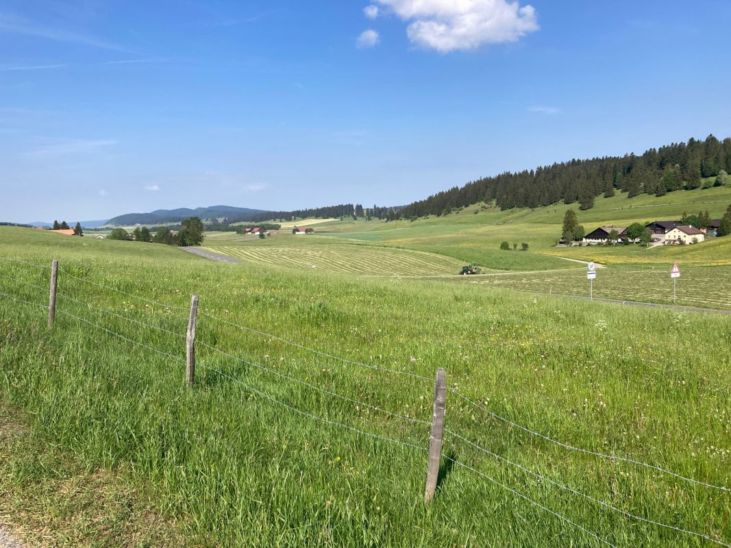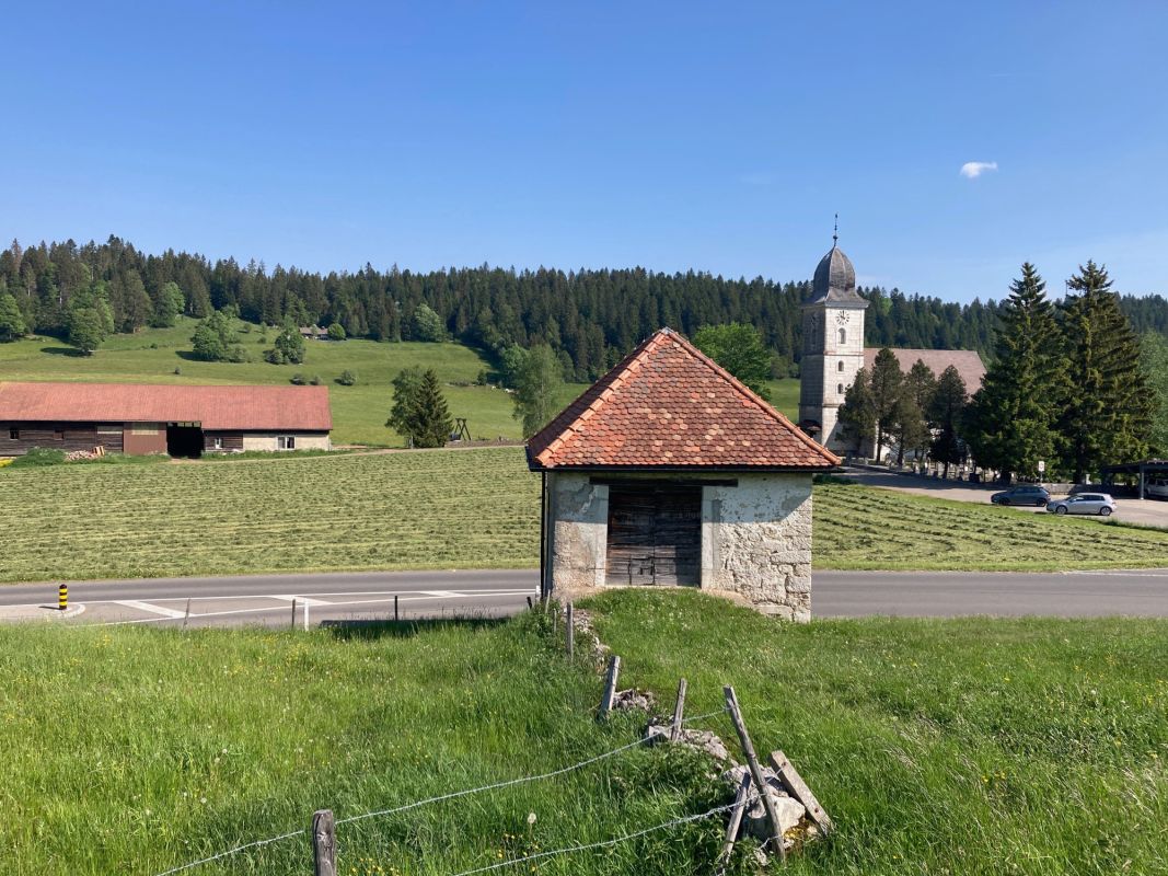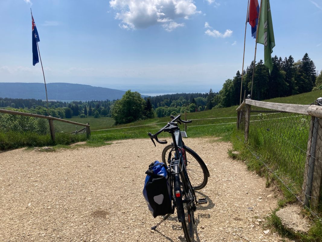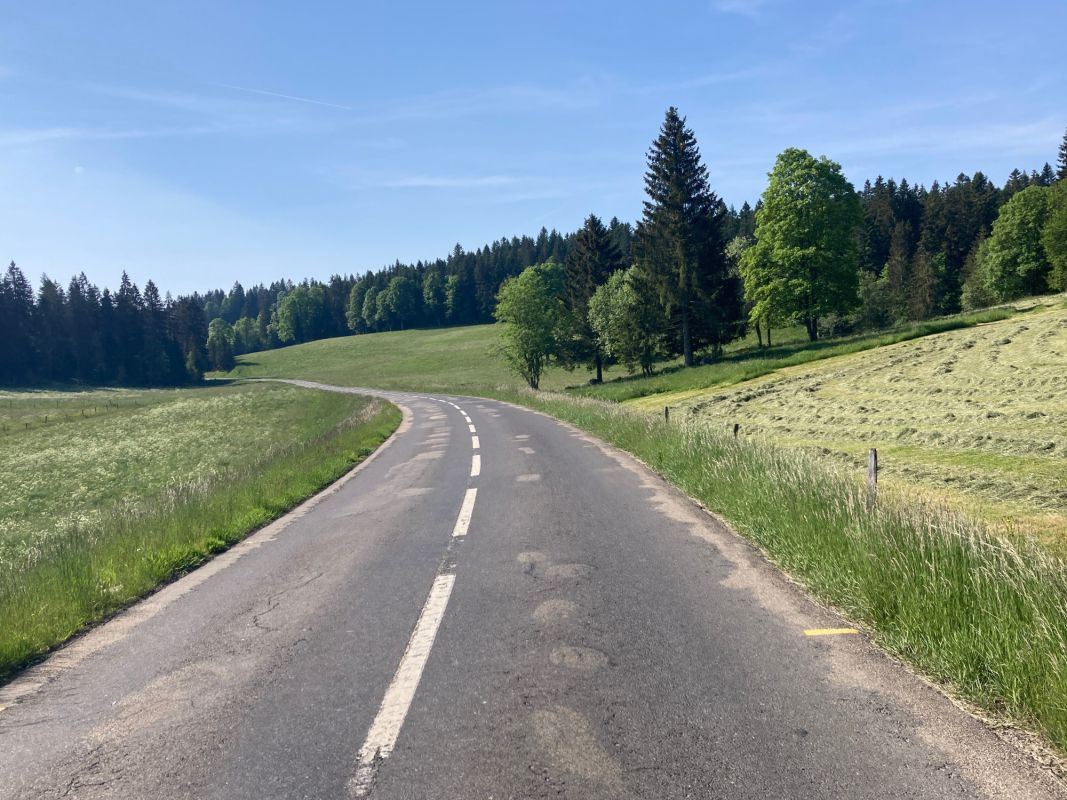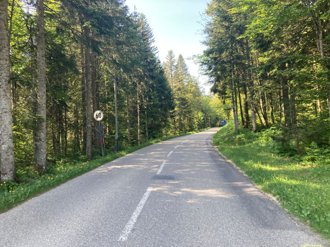 Nach einer Zugfahrt durch abgelegene schöne Jura-Höhen starte ich in der bekannten Uhrenstadt La-Chaux-de-Fonds auf 992 m.ü.M. zur Tagestour über die drei Pässe Col des Roches, Col de la Tourne sowie den Col de la Vue des Alpes im Kanton Neuenburg. Auf der Hauptverkehrsachse fahre ich vom Bahnhof durch die Stadt La-Chaux-de-Fonds und Le Locle steigungsfrei zum ca. 10 km entfernten Col des Roches. Ganz unscheinbar steht hier an der Hauptstrasse die Passbeschilderung und kurz danach folgt sogar eine Bahnhof-Haltestelle mit dem gleichnamigen Namen. Hier im nahen Grenzgebiet zu Frankreich beginnt dann der erste Anstieg inmitten schöner Natur. Verkehrsarm verläuft die schmale Strasse vorbei an bunten Wiesen, weidenden Kühen, Pferden & Schafen sowie durch schöne, schattenspendende Waldgebiete. Kleine Hochebenen ermöglichen dabei immer wieder Erholungsphasen. Ein Wanderwegweiser auf dem «Grande Joux» zeigt, dass ich mich hier bereits auf einer Höhe von 1171 m.ü.M. befinde, also sogar 1 m höher als der kommende Pass, doch zunächst folgt tatsächlich nochmals eine Abfahrt hinunter nach Les-Ponts-de-Martel bevor der finale Anstieg zum Pass kommt. Auf dem Col de la Tourne, welchen ich nach total ca. 1h 45 min erreiche, habe ich dann Sicht hinunter auf den Neuenburgersee. Auch während der Abfahrt geben die Bäume teilweise kurze Sicht zum See frei, aber die Sichtverhältnisse lassen nur wenig Fernsicht zu. In Boudevillier beginnt dann der letzte Anstieg auf den höchsten der drei Pässe. Knackig geht’s auf breiter Strasse immer in gleicher Richtung den Jurahügeln entlang aufwärts, die Szenerie verändert sich dabei auf den ca. 8 km kaum. Die vielen Beschilderungen zur "Vue des Alpes» schüren Erwartungen, die am heutigen Tag dann auf 1283 m.ü.M. mangels Fernsicht nicht ganz erfüllt werden können. Mit über 1000 Höhenmetern in den Beinen freue ich mich dann auf eine letzte Abfahrt hinunter nach La-Chaux-de-Fonds, wo die schöne Tour im Neuenburger Jura nach 54 km endet.
