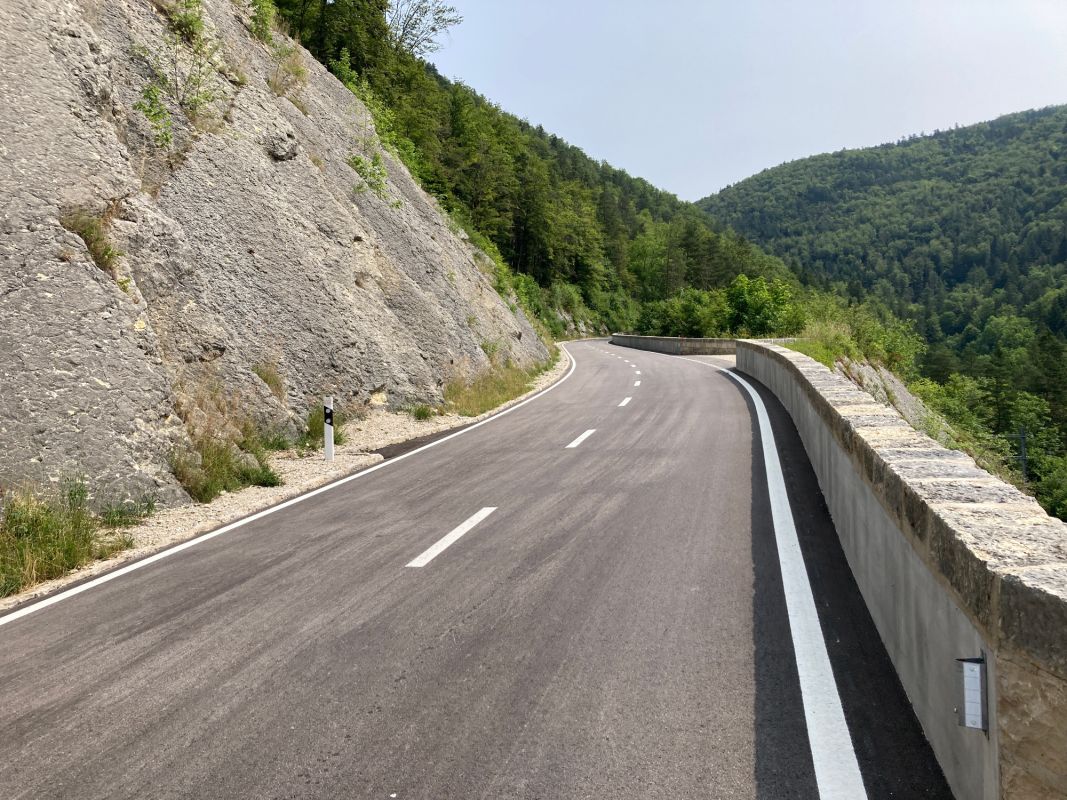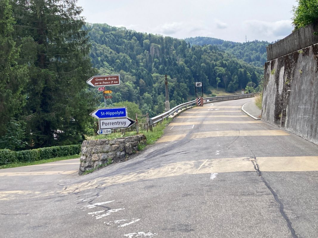 In Tavannes auf 754 m.ü.M. beginnt um 08.45 Uhr meine heutige Rundtour über den Col de Mont Crosin (1227 m.ü.M.) sowie den Col de Pierre-Pertuis (827 m.ü.M.). In schöner landschaftlicher Umgebung geht’s zu Beginn moderat aufwärts, die Stimmung an diesem Morgen mit Vogelgezwitscher und der Sonne im Rücken ist sehr friedlich. In Tramelan erreiche ich die erste grössere Ortschaft wo dann bis Les Reussilles der erste eher steile Anstieg bewältigt werden muss. Danach verläuft die Route wieder eher gemächlich bis Mont Tramelan, wo ich dann aber links zum Col de Mont Crosin abbiege und noch die restlichen Höhenmeter zu bewältigen habe. Rasant geht’s dann hinunter nach St.Imier, wo ich entlang der Hauptstrasse den Rückweg nach Tavannes in Angriff nehme. Die Route entsprechend deutlich verkehrsreicher, verläuft jedoch vorwiegend flach durch einige Dörfer. Erst in Sonceboz beginnt dann der eigentliche Passanstieg zum Col de Pierre-Pertuis. Mit seinen 827 m.ü.M. gehört dieser Pass zu den eher kleinen Pässen und entsprechend war der Aufstieg wie danach auch die Abfahrt hinunter nach Tavannes eher von kurzer Dauer. Um 11.30 Uhr endete diese Rundtour nach 43 km bzw. 673 Höhenmetern. Mit dem Zug fahre ich anschliessend nach St.Ursanne um auf der Route St.Ursanne – Porrentruy über den Col de la Croix zu fahren. Die 15 km lange Route mit 367 Höhenmetern beginnt in der wunderschön im Juragebirge eingebetteten und direkt am schönen Doubs liegend Altstadt. Doch von da beginnt der ziemlich knackige, steile Anstieg hoch zum Pass. Glücklicherweise ist die Distanz bis zum Pass nicht allzu lange, so dass ich nach ca. 35 min bereits oben bin. Erholsam geht’s dann rasant talwärts bis nach Porrentruy, wo die Tour über den letzten Schweizer Pass im Juragebirge endet.