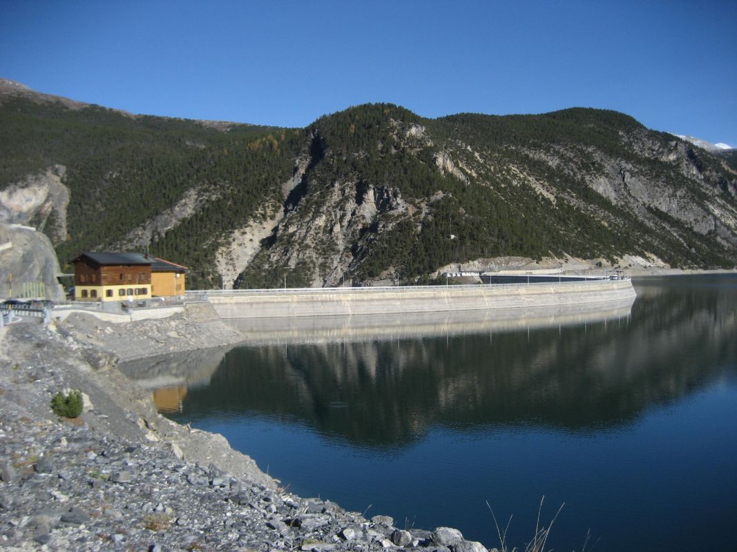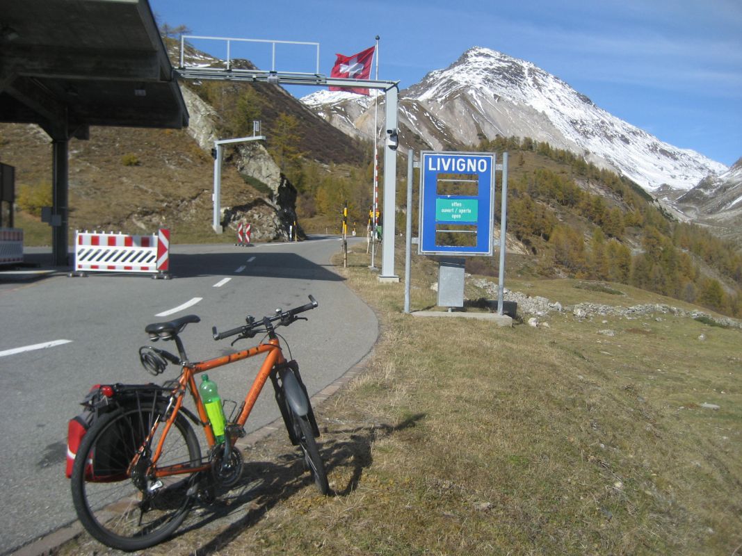 Wichtige Info: Wenn sich die Strasse beim Lago di Livigno Richtung Norden abwendet (Grenze und Staumauer), gibt es für Fahrradfahrer nur 2 Möglichkeiten durch den Munt la Schera-Tunnel zu kommen: Entweder man wartet bei der Grenze auf den nächsten Bus (Wartezeiten von über 1 Stunde möglich), oder man fragt einen Liefer- oder Lastwagenfahrer ob er Dich samt Bike durch den einspurigen, 3,5 km langen Tunnel zurück in die Schweiz fahren kann. Eine andere Möglichkeit besteht nicht, da das Befahren des Tunnels mit Fahrrädern im Jahre 2008 verboten wurde.