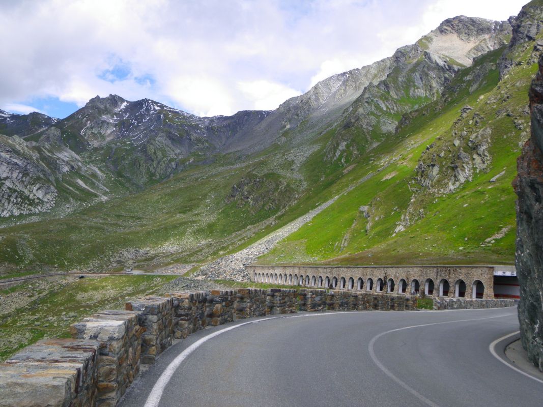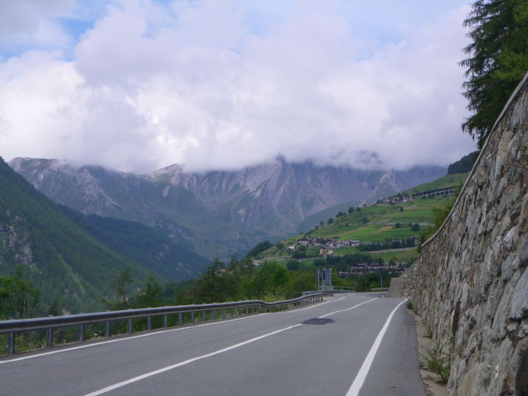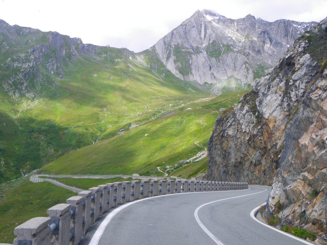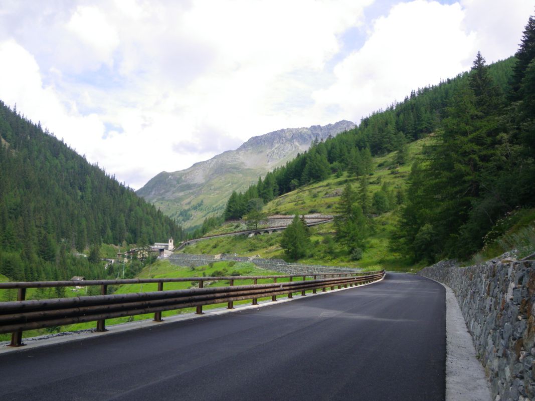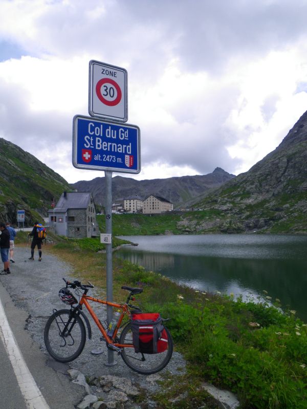 Der Grosse Sankt Bernhard Pass ist mit 2469 m Höhe der drittgrösste Schweizer Alpenpass, gleichzeitig aber aufgrund der grossen Höhenunterschiede zu den Talortschaften eine besondere Herausforderung für Fahrradfahrer. Da glücklicherweise der grösste Teil des motorisierten Verkehrs ab Saint-Rhémy-en-Bosses (Italien) die Route durch die Tunnels/Gallerien wählt, wird es ab hier über die richtige Passstrasse nun bedeutend ruhiger und entsprechend schöner. Auf der schönen Passhöhe erreicht man schliesslich auch die italienisch-schweizerische Grenze und ein paar Souvenirläden, ein Museum sowie Hundezwinger mit Bernardinerhunden deuten noch heute auf die erfolgreiche Züchtung der "Bernardiner Hunde", welche man zur Rettung von Lawinenopfern einsetzte. Die Route hinunter nach Martigy folgt dem Fluss "Dranse" und schon wenige km nach der Passhöhe vereinen sich die beiden Strassen wieder. Bei wieder bedeutend mehr Verkehr gehts relativ spektakellos und durch einen längeren Tunnel/Gallerie ins Tal hinunter, wodurch man den parallel verlaufenden Stausee fast übersieht. Sehr zu empfehlen ist dagegen ein jeweiliger Abstecher in die kleinen, parallel zur Passstrasse verlaufenden Dörfer, wo einige noch sehr "ursprüngliche" Gebäude & Kirchen und enge Gassen bestehen.