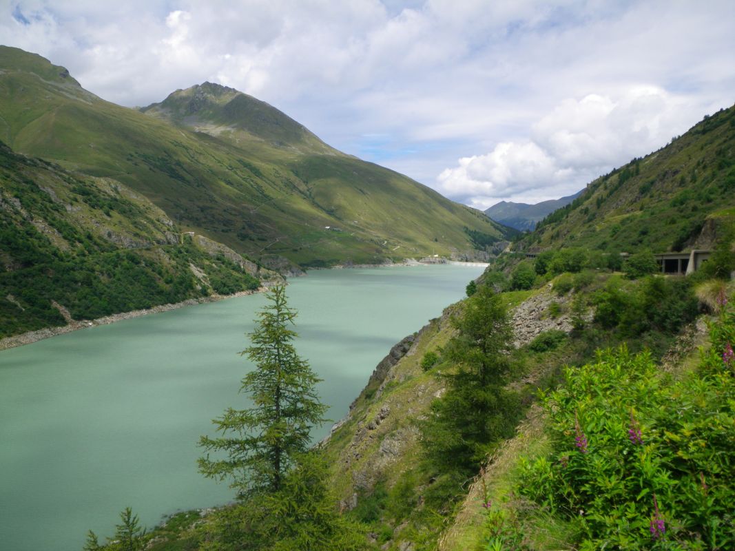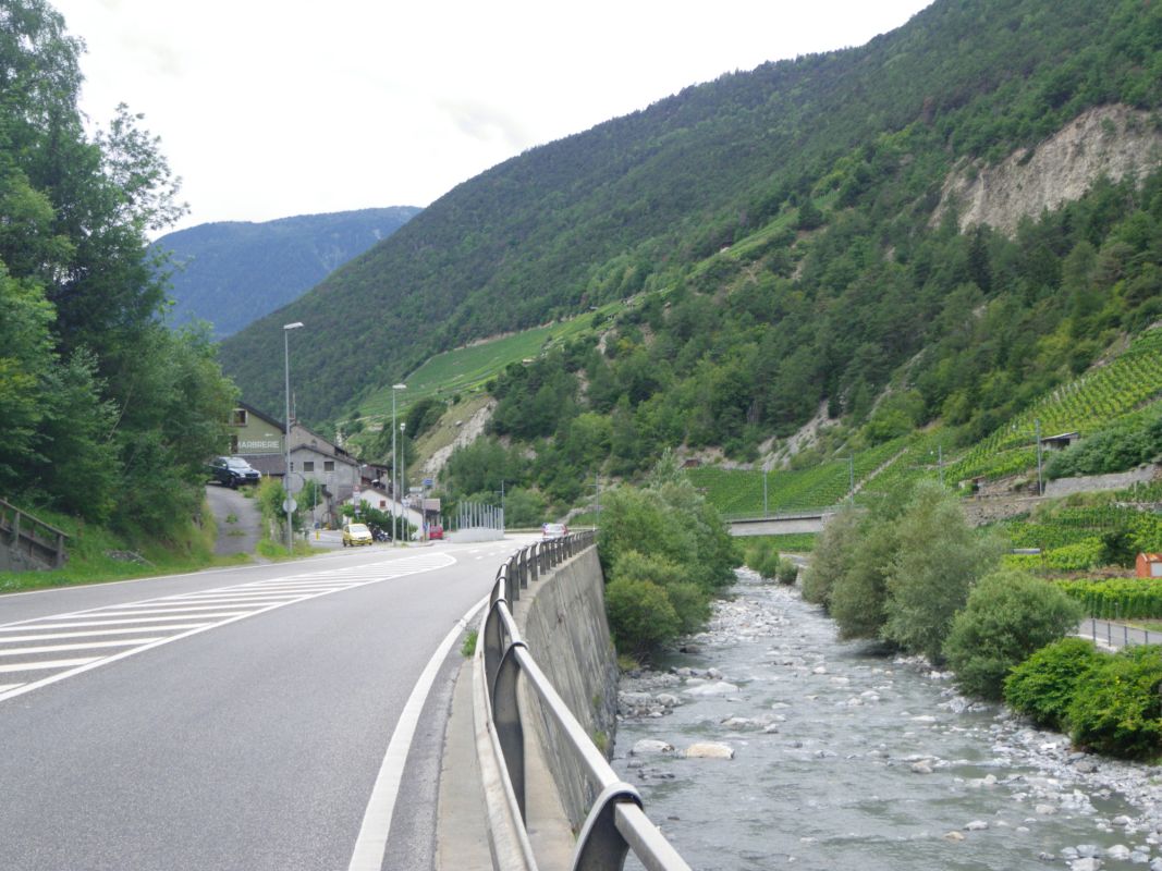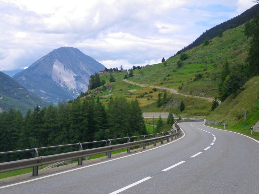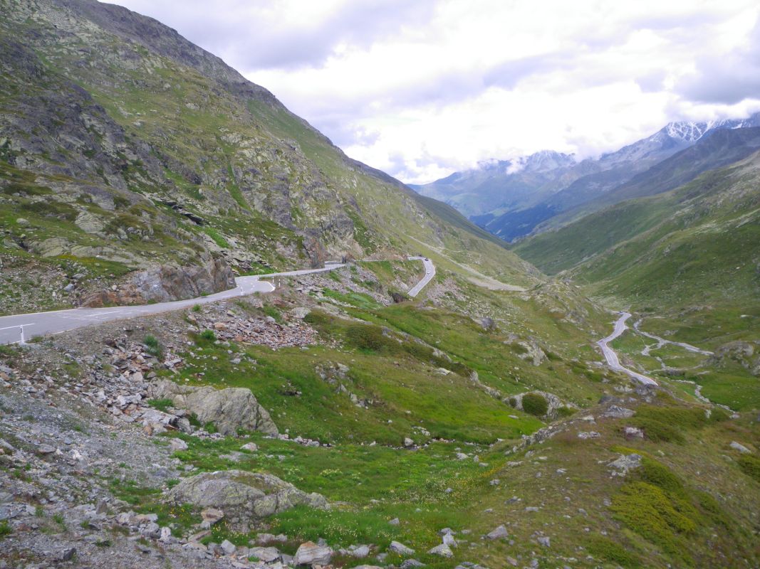 Der Grosse Sankt Bernhard Pass ist mit 2469 m Höhe der drittgrösste Schweizer Alpenpass, gleichzeitig aber aufgrund der grossen Höhenunterschiede zu den Talortschaften eine besondere Herausforderung für Fahrradfahrer. Da glücklicherweise der grösste Teil des motorisierten Verkehrs ab Saint-Rhémy-en-Bosses (Italien) die Route durch die Tunnels/Gallerien wählt, wird es ab hier über die richtige Passstrasse nun bedeutend ruhiger und entsprechend schöner. Auf der schönen Passhöhe erreicht man schliesslich auch die italienisch-schweizerische Grenze und ein paar Souvenirläden, ein Museum sowie Hundezwinger mit Bernardinerhunden deuten noch heute auf die erfolgreiche Züchtung der "Bernardiner Hunde", welche man zur Rettung von Lawinenopfern einsetzte. Die Route hinunter nach Martigy folgt dem Fluss "Dranse" und schon wenige km nach der Passhöhe vereinen sich die beiden Strassen wieder. Bei wieder bedeutend mehr Verkehr gehts relativ spektakellos und durch einen längeren Tunnel/Gallerie ins Tal hinunter, wodurch man den parallel verlaufenden Stausee fast übersieht. Sehr zu empfehlen ist dagegen ein jeweiliger Abstecher in die kleinen, parallel zur Passstrasse verlaufenden Dörfer, wo einige noch sehr "ursprüngliche" Gebäude & Kirchen und enge Gassen bestehen.