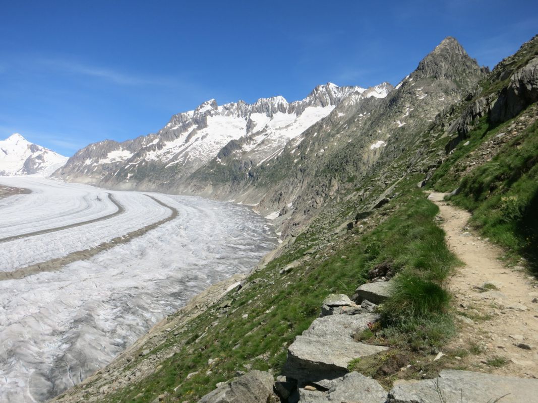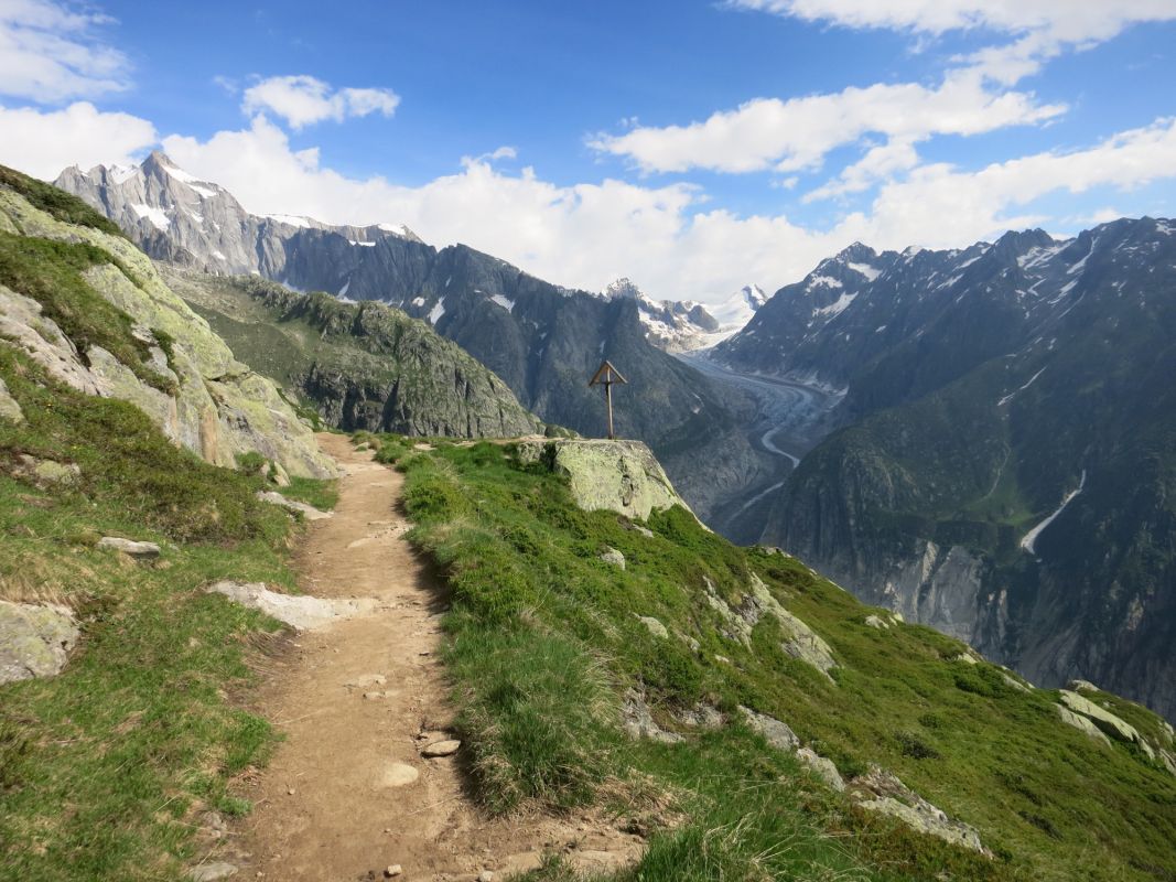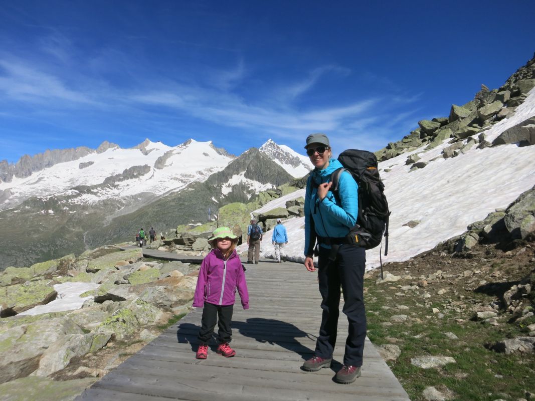 Meine Bewertung: Wunderbare Wanderung mit einem grossen Highlight, dem Aletschgletscher. Einfach grandios! Mit Kleinkindern nur mit Kindertrage geeignet, da die Wege oft schmal sind oder auch mal durch Geröllfelder führen.