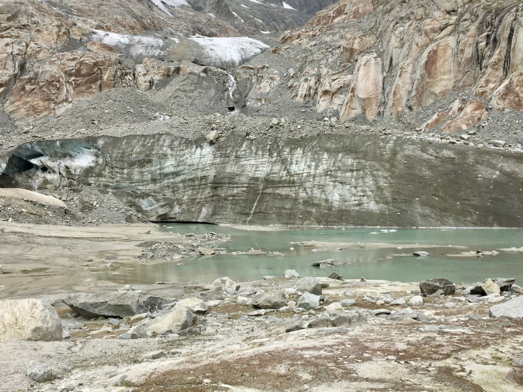 Frühmorgens um 05.00 Uhr fährt mein Zug Richtung Furkapass, so bin ich immerhin um 09.00 Uhr auf über 2400 m.ü.M. - Was für eine schöne Höhe um eine Wanderung zu beginnen... Die Sonne scheint, es kann losgehen! Die Wanderung führt von der Postautohaltestelle "Hotel Furkablick" leicht ansteigend inmitten einer wunderbaren "Steinwüste" zum Sidelenbach, diesen überquert man und steigt hoch auf eine Seitenmoräne bis man schliesslich nach etwas mehr als 1 Stunde die am Fusse des Galenstockes auf 2708 m.ü.M. gelegene Sidelenhütte erreicht. Hier beginnt dann der Uebergang mit dem speziellen Name "Nepali Highway" ostwärts zur Albert-Heim-Hütte. Die Route trägt diesen Namen, weil es ein nepalesischer Hüttengehilfe war, der diesen Weg entdeckte. Die durchwegs blau-weiss markierte Route führt auf oft schmalen Pfaden über Blockfelder / felsige Gebiete & Wildbächen leicht abwärts bis man unverhofft, nach einem kleinen Zwischenanstieg plötzlich den Galenstock (3586 m.ü.M.) mit seinem atemberaubenden Tiefengletscher vor sich hat. Ich liess es mir nicht nehmen, die offizielle Route zu verlassen und zum Gletschersee hinab zu steigen. Durch die nächtliche Kälte konnte man im See vereinzelt ganz dünne Eissschichten erkennen. Da die Albert-Heim-Hütte in der Ferne bereits zu sehen war, folgte ich dem Lauf des Tiefenbachs, überquerte diesen über eine Brücke und mit dem letzten kurzen Aufstieg erreichte ich die auf 2534 m.ü.M. gelegene Hütte. Bei nun bereits dichteren Wolkenfeldern ergänzte ich die Route noch mit dem rund 20min dauernden Aufstieg zum Gipfel "Auf den Stöcken" (2591 m.ü.M.). Nach der Rückkehr zur Albert-Heim-Hütte konnte ich dann die herrliche Aussicht auf die Gletscherwelt um den Galenstock & gr. Bielenhorn weiter auf mich wirken lassen.